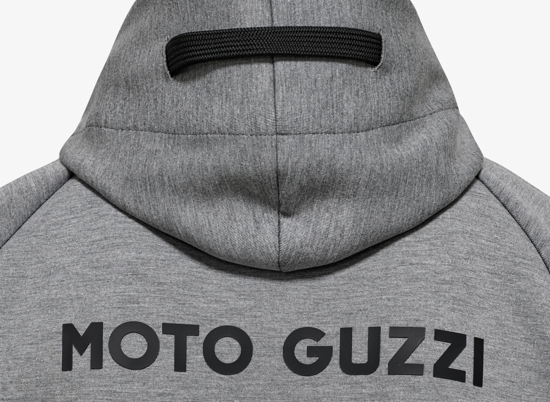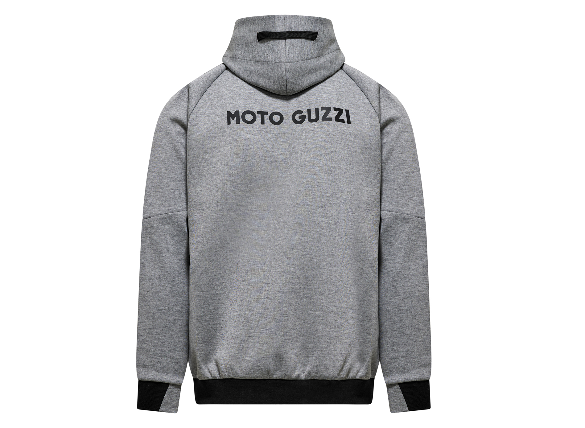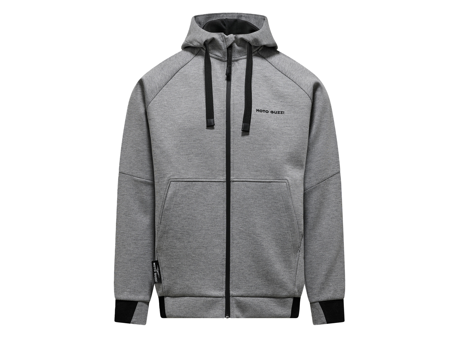 Sweatshirt van scubastof met rubberen MOTO GUZZI opdruk op de borst en rug. Met verstelbare capuchon, doorlopende ritssluiting en kangoeroezakken. Raglanmouwen, een sportieve herinterpretatie van een herenklassieker. Het op de zijkant genaaide MOTO GUZZI logo voegt een opvallend accent toe, terwijl de contrasterende manchetten van dubbele stof aan de mouwen en zoom zorgen voor stijl en comfort.